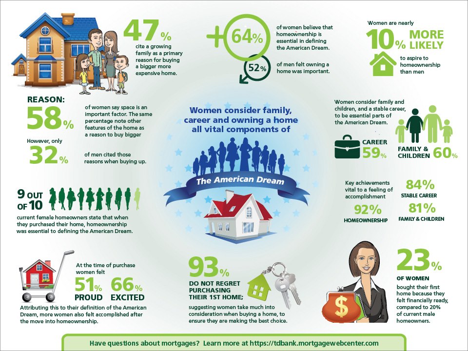 This interesting infographic shows the relationship between women and home ownership and how it relates to their view of the American Dream from KCM Blog.