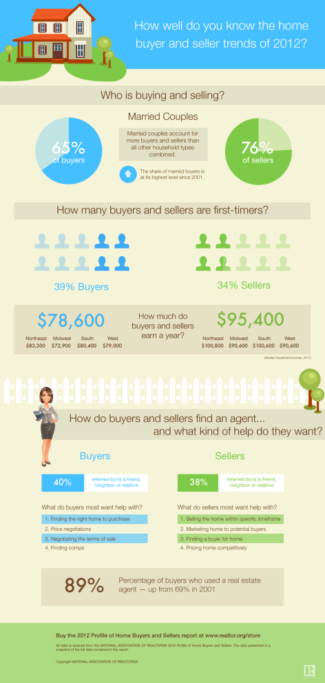 Here is an infographic from National Association of Realtors® on home buyer and seller trends of 2012