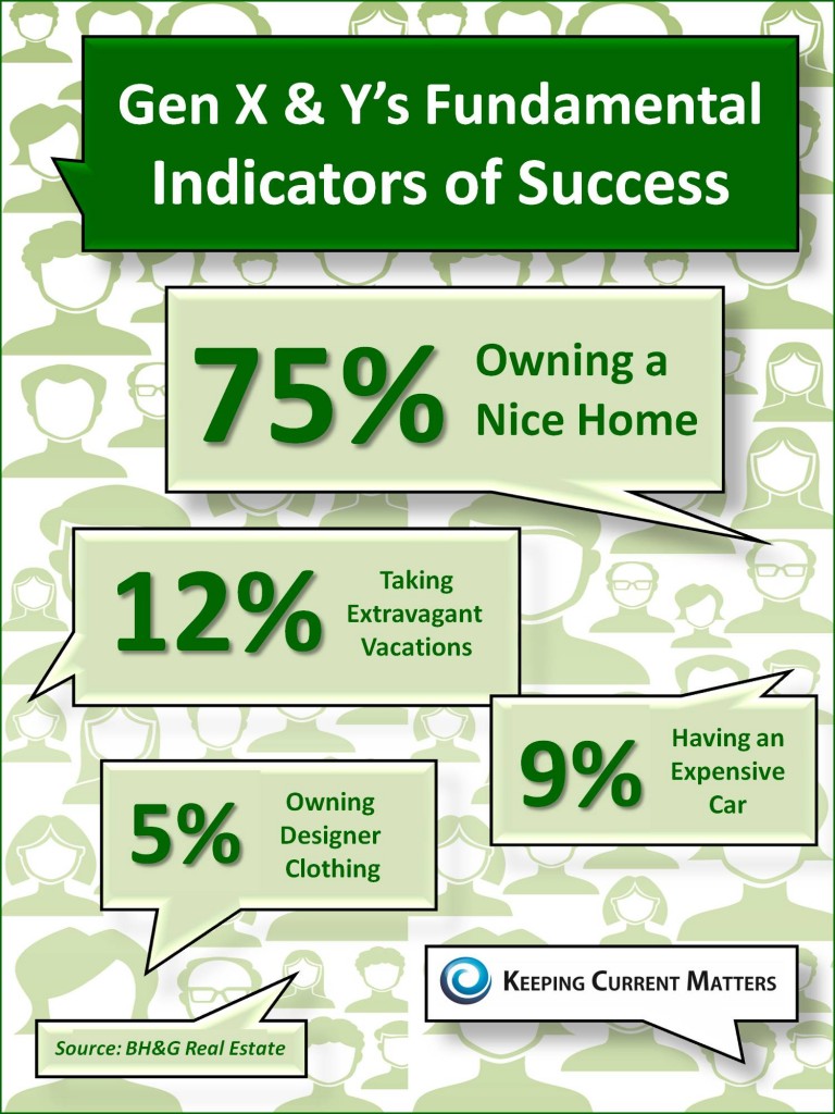 Check out this infographic showing what Gen X & Y believe to be indicators of success from KCM Blog.